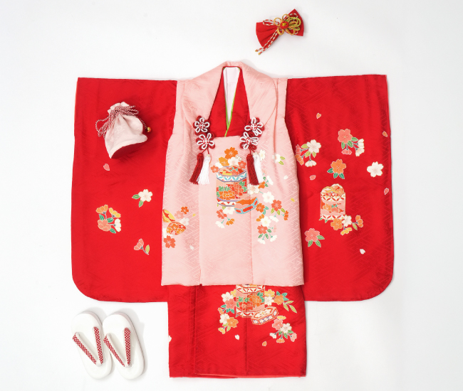 建议您穿可爱的贺礼服、雄壮的袴、华丽的腰带等,为您的孩子健康成长而祝福的一套。也有头发装饰、草鞋和小物件。