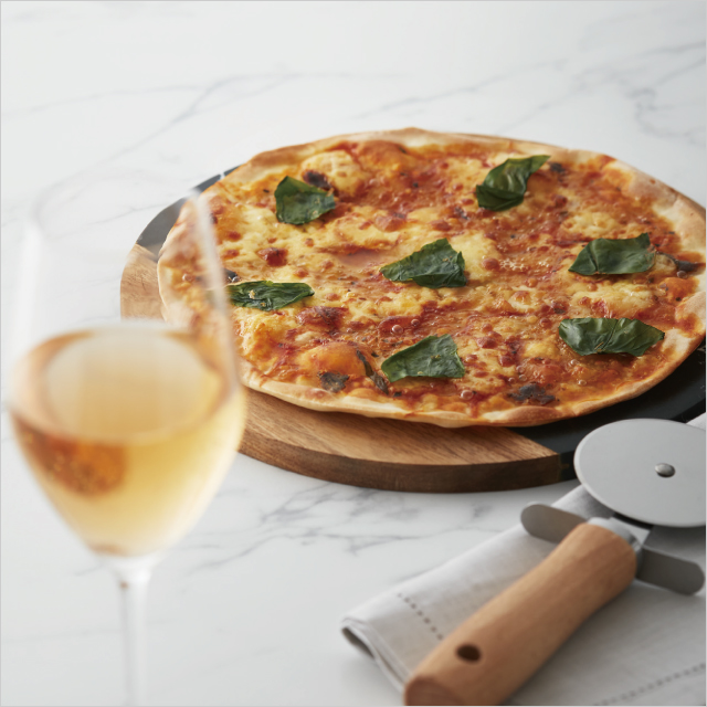 “在由多个葡萄品种制成的桃红葡萄酒中,加入了丰富多彩食材的比萨饼。同时浓厚的味道也是配对点”。