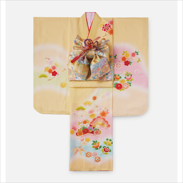七岁的庆祝是从室町时代开始流传下来的,据说是取下和服的带子后第一次系上腰带的成长祝贺仪式“带解仪式”的由来。给人以华丽可爱的印象,也能感受到成熟气质的搭配很受欢迎。