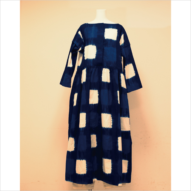 在京都大原制作浴衣地、披肩、室内装饰等的“工房蓝之馆”。使用阿波(德岛县)精心培育的蜘蛛,用江户时代确立的“天然灰汁发酵建”的手法染上的本蓝染连衣裙,触感也很舒适。
