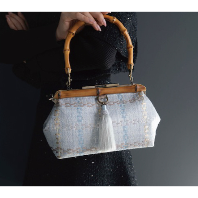 以“成熟女性的装束”为主题,制作了原创设计的金枪鱼包。塔塞尔为欧洲精心挑选的织物锦上添花。这是一款融合了京都特有的素材和技巧的沉稳风格的包包。