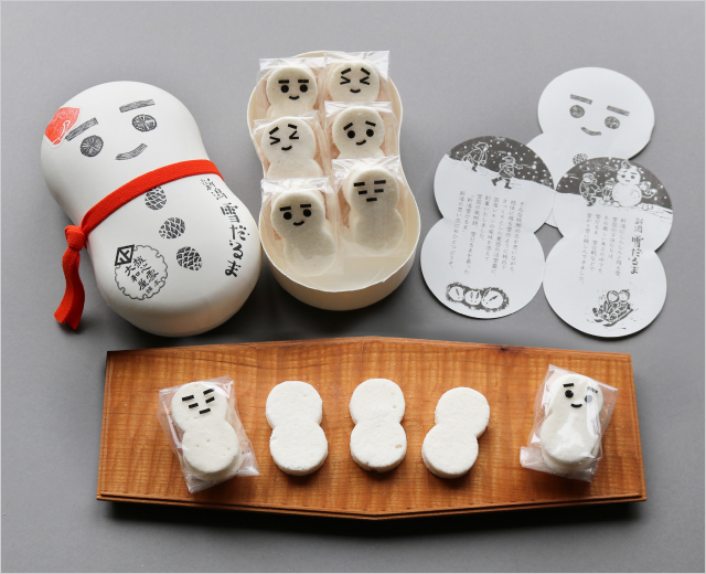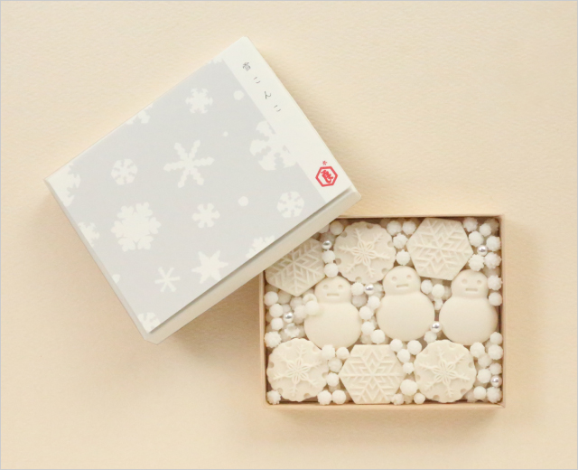 口感松软的雪人和雪的结晶是使用和三盆糖制作的温柔甜味的干点心。