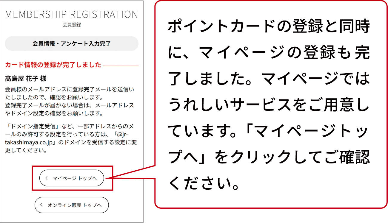 ①Please enter the registration e-mail address on the My Page login screen "New Member Registration" and send it.