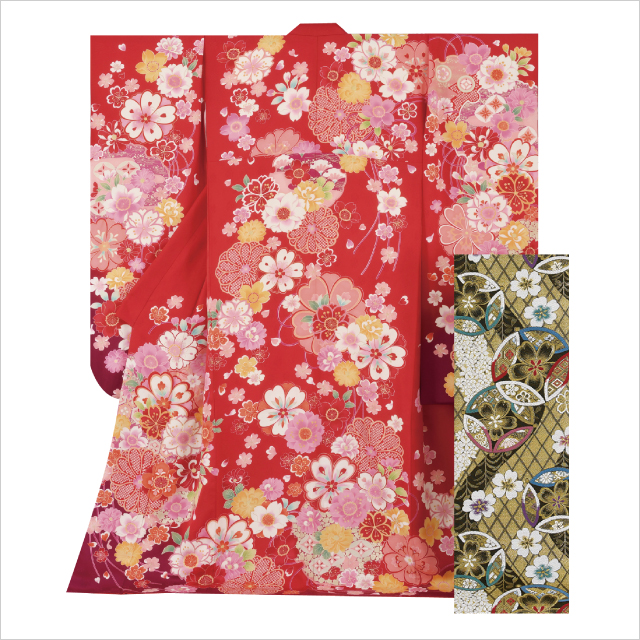 We have a wide range of items from classic to modern patterns, including furisodes with gorgeous and cute pink cherry patterns.