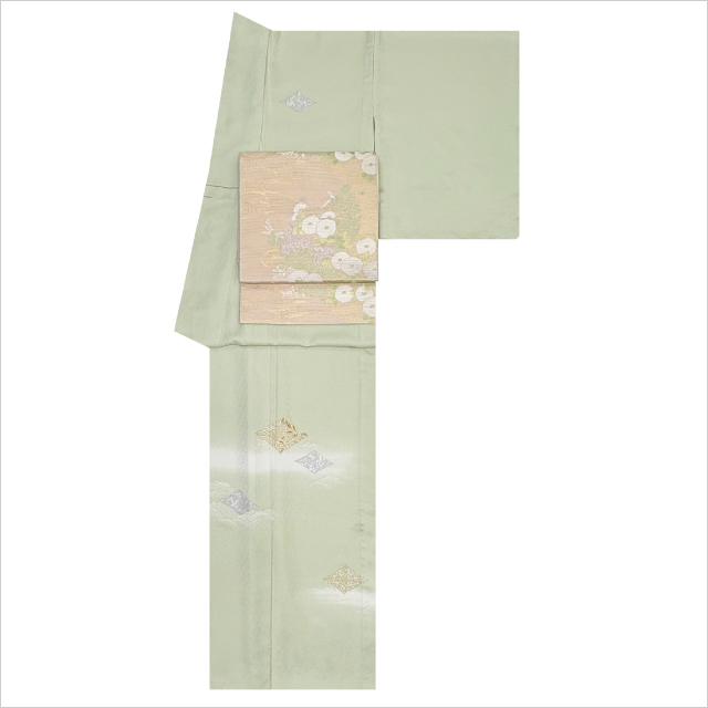 Single-cloth kimono with calm colors is perfect for tea ceremonies and dinner parties at the turn of the season. It has a modest and elegant atmosphere.