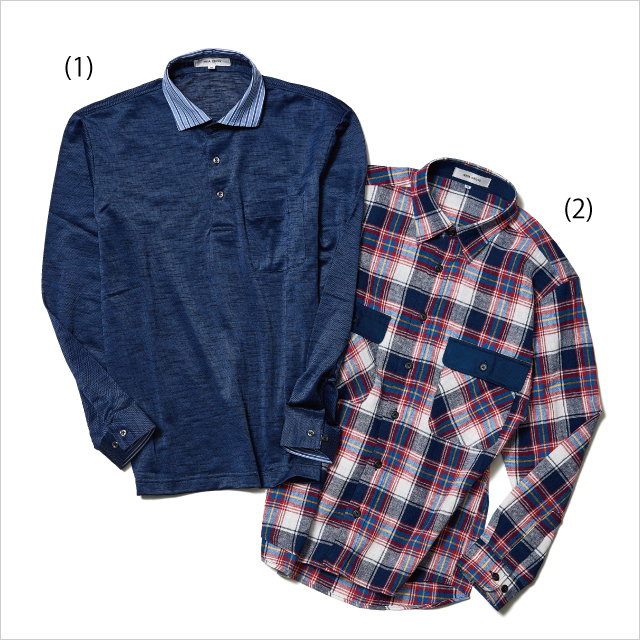 We have a wide variety of patterns and materials, such as polo shirts that can be worn neatly as an inner layer of a jacket with a pedestal collar, and casual shirt with long sleeves.