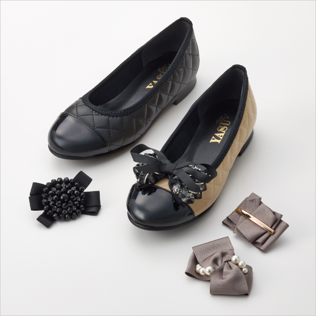 Strap pumps with elegant glitter material that makes your feet gorgeous.