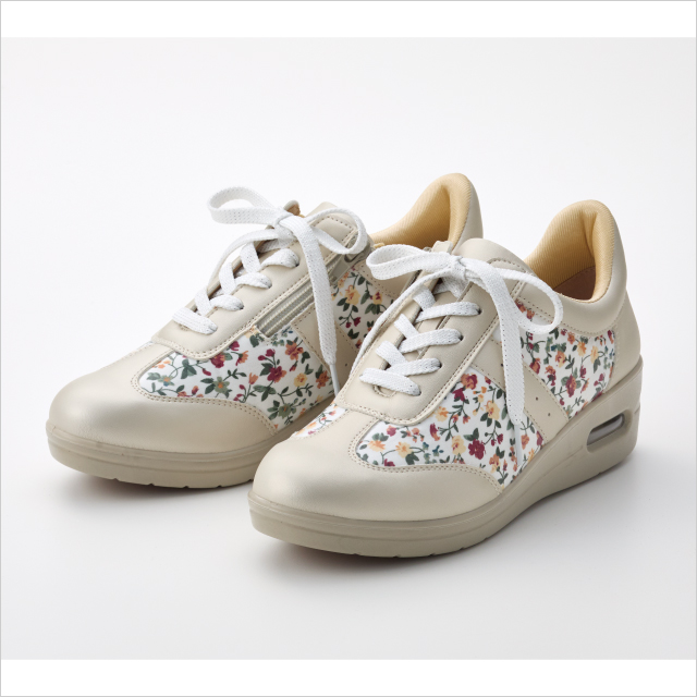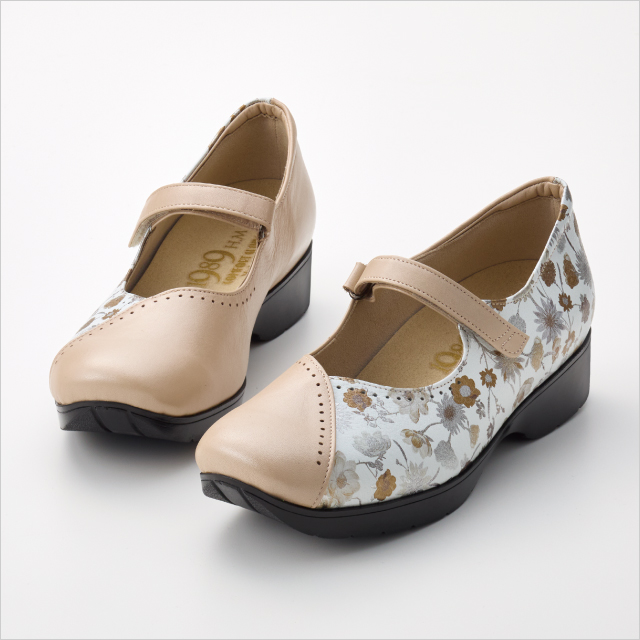 The combination of beige and flower pattern is a spring-like pair. With a strap, it is easy to take off and wear, and features a cushioning insole.