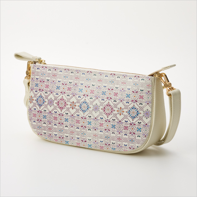Uses delicate and vivid genuine leather, painted with pure white paperback leather. It has a card pocket and can be used as a shoulder wallet. Matches with formal occasions such as kimonos.