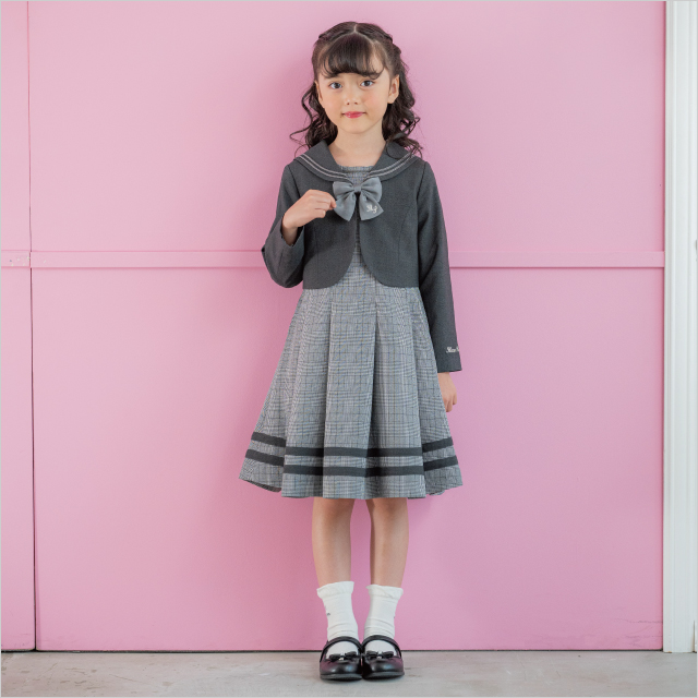 Coordinating with a plaid dress with a cute SAILOR-style jacket.