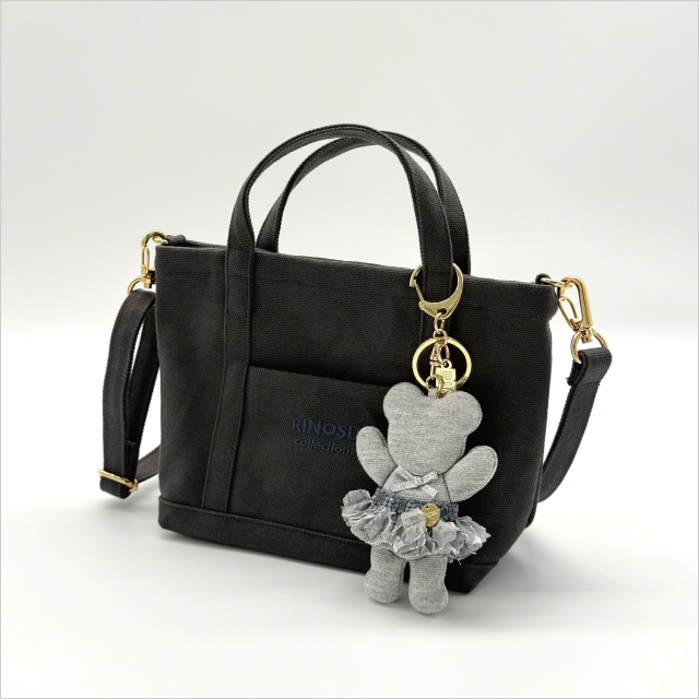 Mini-sized 2-way bag with shoulder. A fluffy charm with a large bear motif that attracts eye-catching silver gray with lame to create a cute outfit.