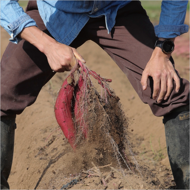 <Imoyakichi> manufactures and sells dried potatoes and baked potatoes in Oita Prefecture. Each brand devised original sweets and prepared dishes using sweet potatoes harvested at the farm that were delicious but discarded just because they were not standardized.