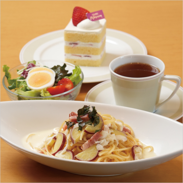Creamy pasta made of sweet potatoes. A great lunch set with dessert after meals and drinks.