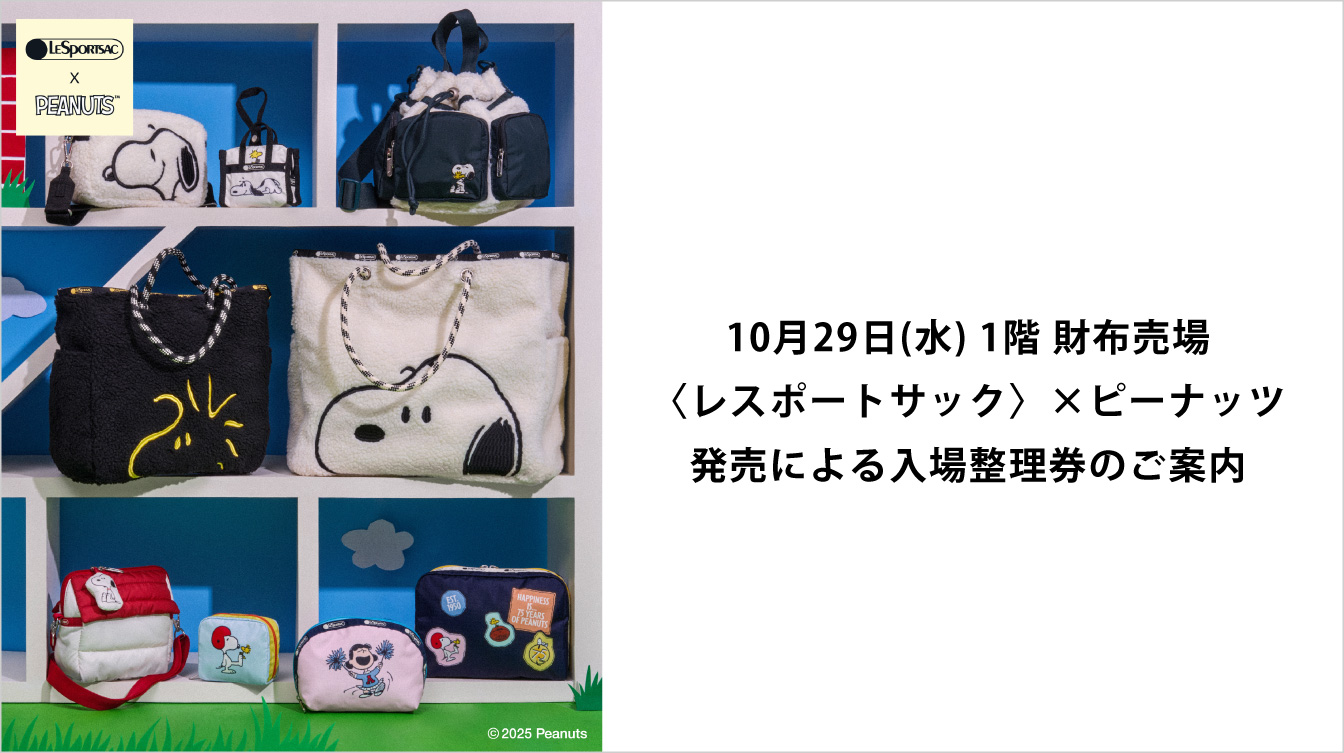 10月29日(水) 1階 財布売場〈レスポートサック〉×ピーナッツ発売による入場整理券のご案内