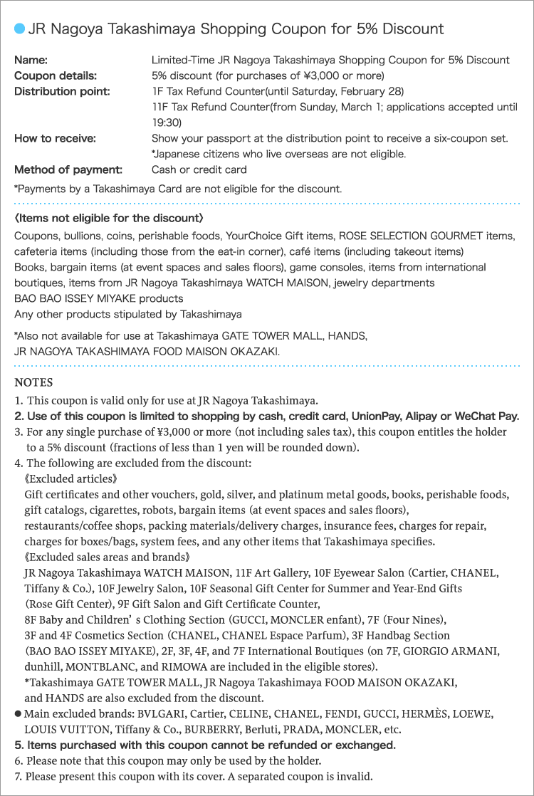 Shopping Coupon for 5% Discount (English / 중국, 번체)