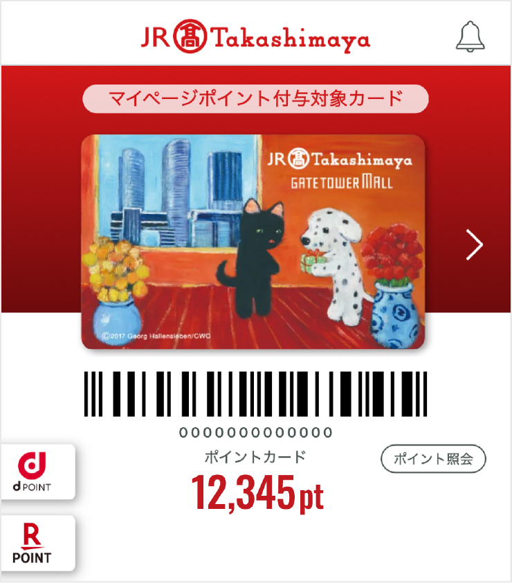제이알 나고야 타카시마야(워치메존, 푸드 메종 오카자키점 포함한다)나 타카시마야 게이트 타워 몰에서의 쇼핑으로, 계산시에 제시하는 것만으로 포인트가 모이는 카드입니다.