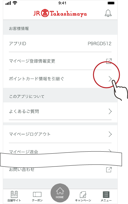 포인트 카드의 재발행 등 전환에 수반하는 카드 정보의 승계를 앱으로 실시할 수 있습니다.