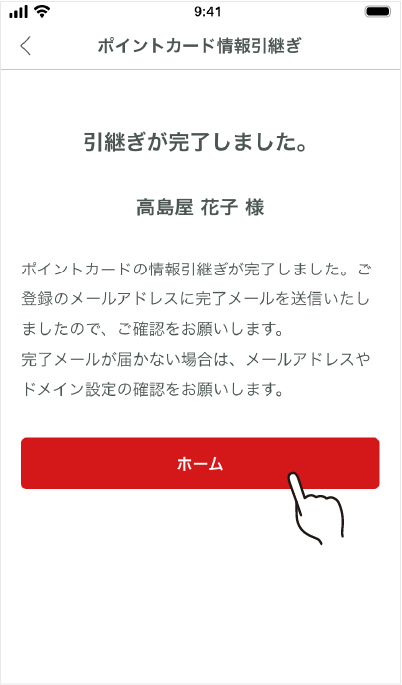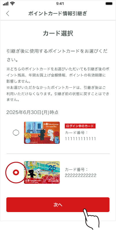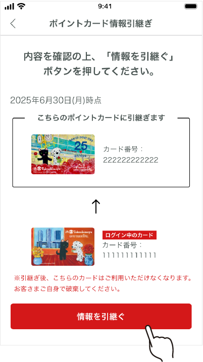 포인트 카드 정보의 승계를 확정합니다.