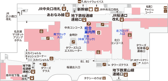 Directly connected to JR Nagoya Takashimaya and Takashimaya Gate Tower Mall |