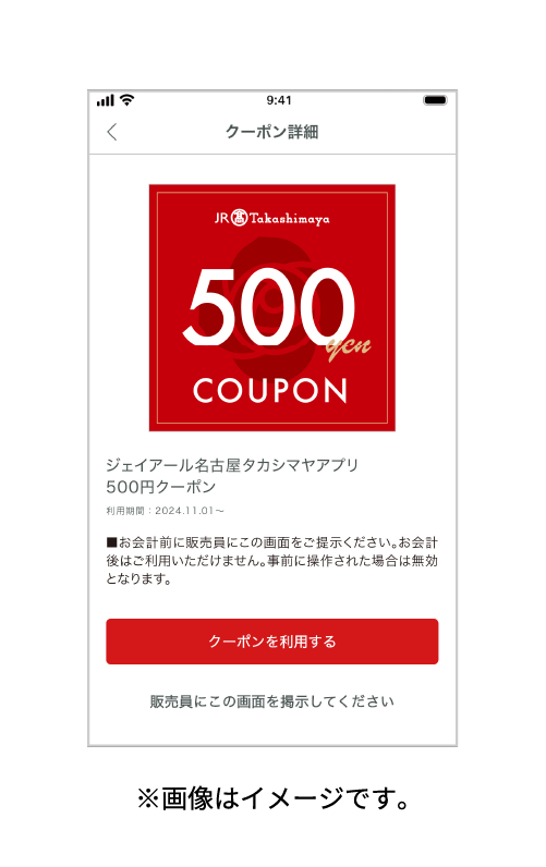 We will deliver coupons that can be used at JR Nagoya Takashimaya and Takashimaya Gate Tower Mall. Coupons for Rank Benefits will also be distributed here.