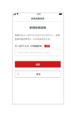 After sending your e-mail address, you will receive an authentication number by reply e-mail from jrnt-info@jr-takashimaya.co.jp.
