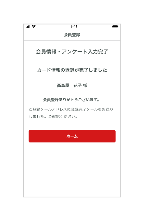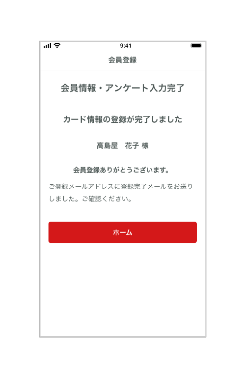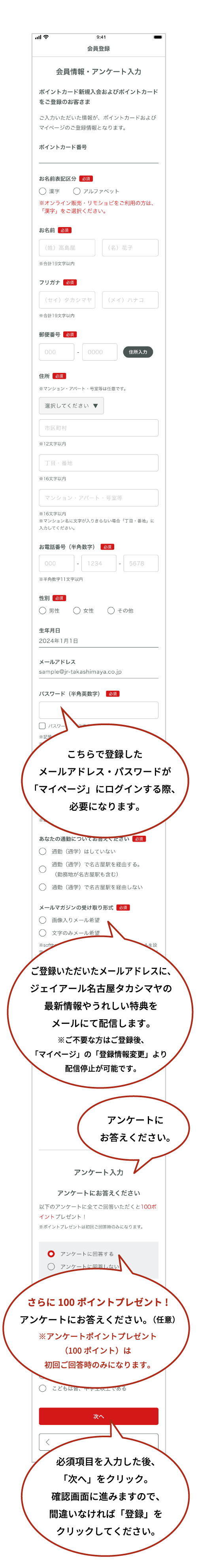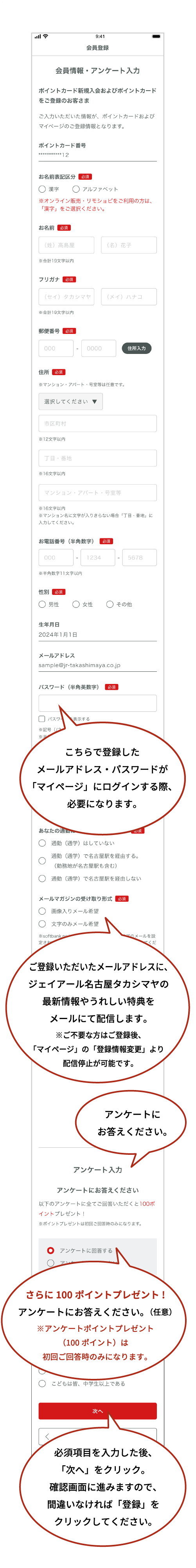 ※If you use the app without registering My Page, a new JR Nagoya Takashimaya Point Card will be issued.