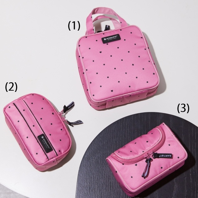 신작 파우치는 화려한 로즈 핑크를 기반으로 트럼프 모티브가 들어간 Dot. 무늬를 다룬 디자인입니다.