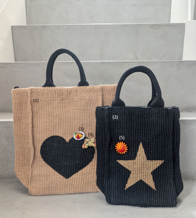 가볍고 튼튼한 직물에 트래드로 베이직한 모티브를 대담하게 프린트한 <파브리코>와 입체감과 팝인 디자인이 특징인 찔러 액세서리 브랜드 <엘름> 가방에 맞추어 원포인트 코디를 즐겨 주세요.