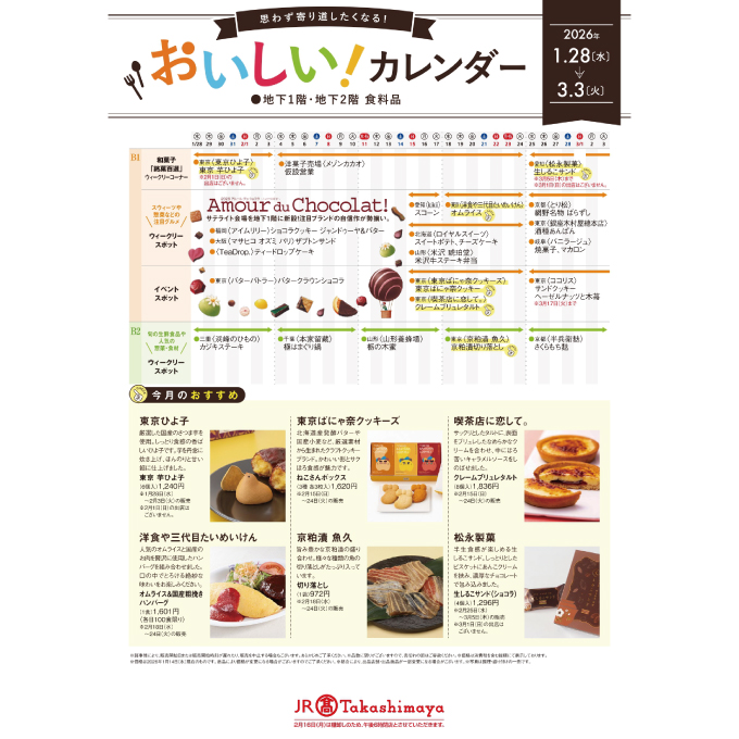 ■2026年1月16日(金)~2月14日(土)■10階 メイン会場、9・8・7・6・5・4・3・地下1階 サテライト会場 ※10階 メイン会場のみ最終日は午後7時閉場■2026年1月21日(水)~2月14日(土) ジェイアール名古屋タカシマヤ フードメゾン 岡崎店 サテライト会場/営業時間:午前10時~午後8時