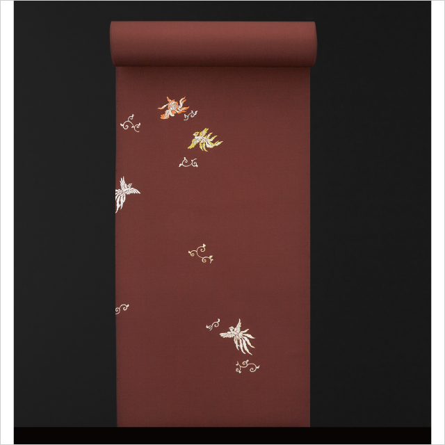 上品な焦げ茶の地色に鳳凰と唐草の文様が映える付下着尺。袋帯を合わせることでフォーマルな席にも着用いただけるなど、多彩なお出かけのシーンに合わせて着こなすことができます。