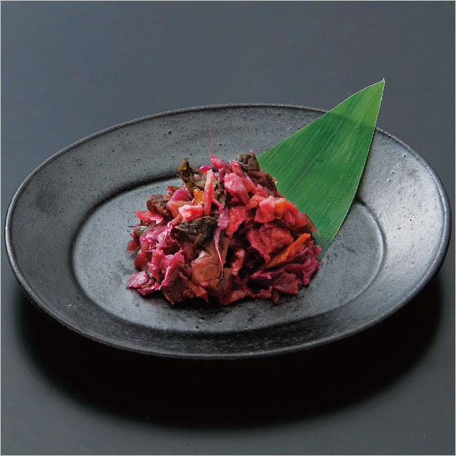 京都大原の地に創業して百余年の京漬物店。志ば漬を、きゅうりやみょうがとともに細かく刻み、食べやすく仕上げました。