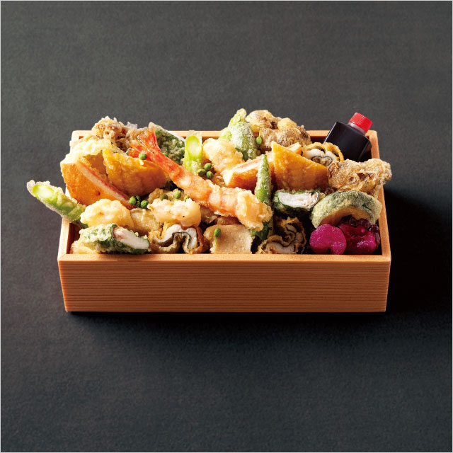 伏見とうがらしをはじめ、旬の京野菜など11品をサクッと軽い天ぷらに。伝統の丼つゆと実山椒の爽やかな香りが、素材の旨みを引き立てます。