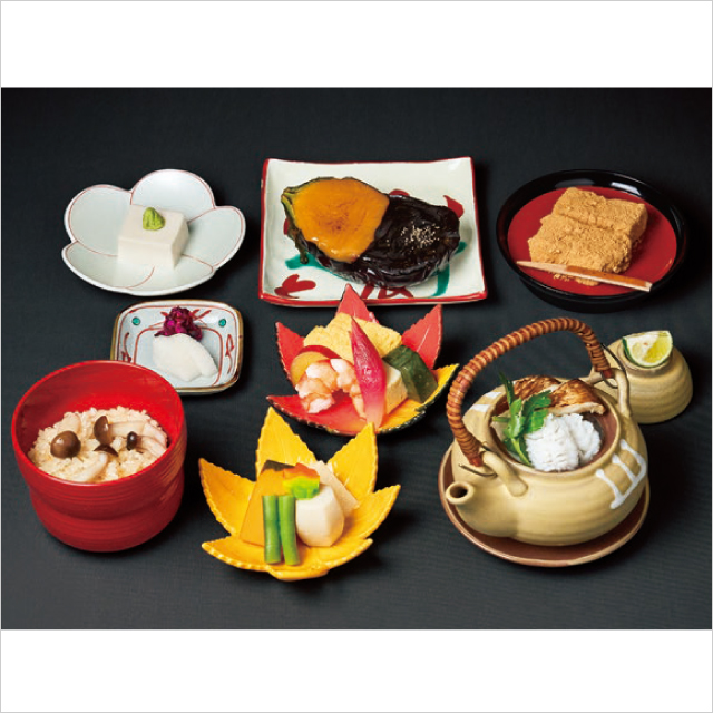 確かな技で季節の素材を吟味し届ける、京料理の老舗。香り豊かな松茸の土瓶蒸しやしめじご飯、茄子の田楽など秋の味覚を会場でお楽しみください。