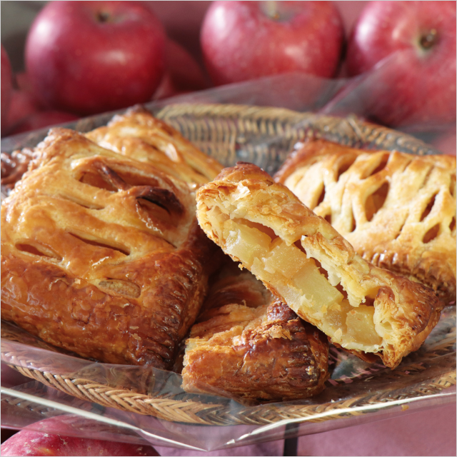 リンゴの食感を程よく残したコンポートと、バニラ入のりんごジャムをたっぷり包んで香ばしく焼き上げます。
