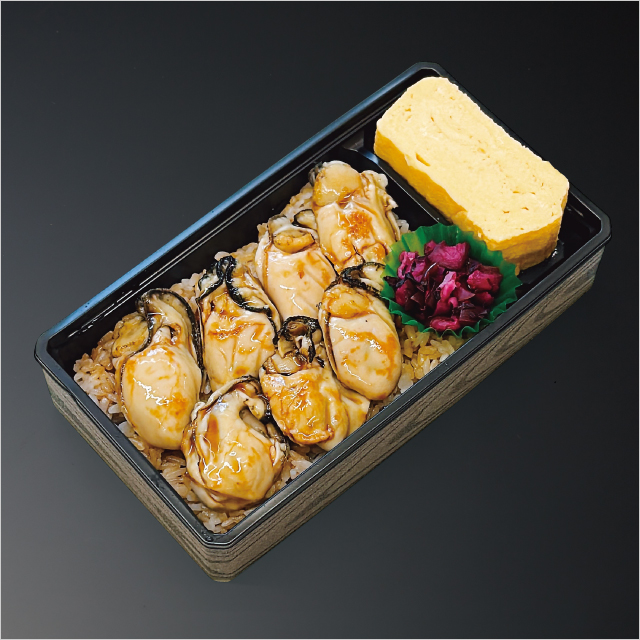 大徳寺をはじめとする京都の寺社や、西陣地域で愛されてきた仕出し料理専門店。大粒の牡蠣とふんわりやわらかな京だし巻のお弁当です。