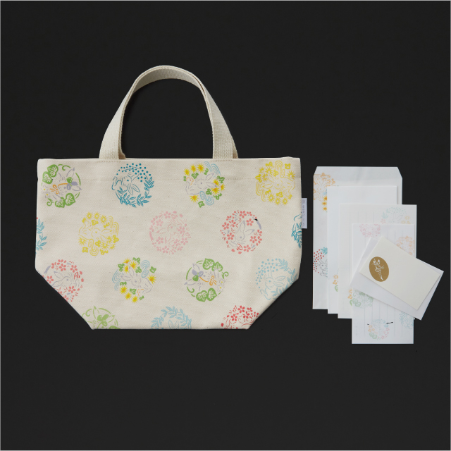 帆布トートバッグ うさぎ紋(封筒:3枚、便箋:3枚、はがき:1枚、ミニカード:1組、トートバッグ:約21×34×15cm) 6,380円〈30点限り〉