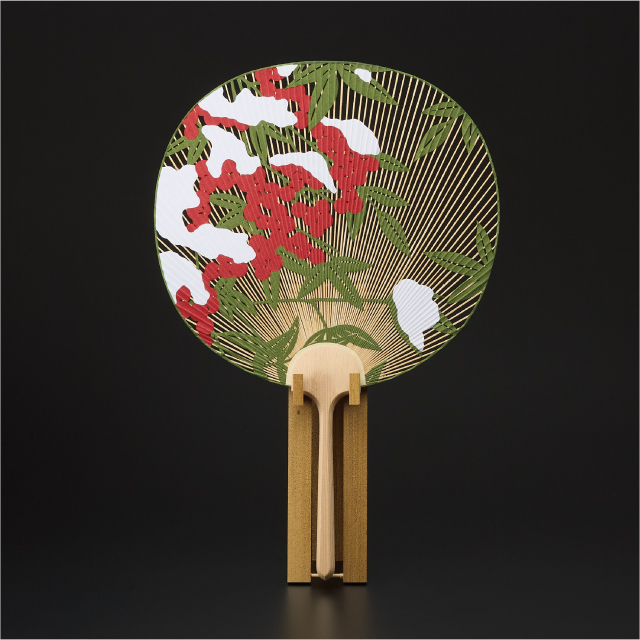 冬の季節にぴったりな雪と南天の図柄。うちわで手軽にお部屋に季節感を取り入れることができます。