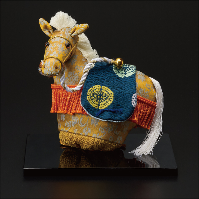 香り 招福午(鞍付)(西陣織正絹金らん/黒台12×15cm、高さ約14cm)