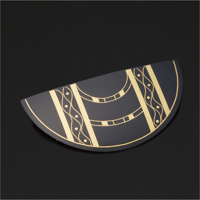 京象嵌 ブローチ つながり(鉄生地、純金銀、漆/最大3×6cm)
