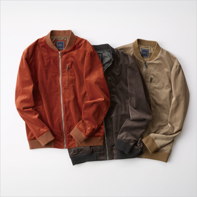 ベロアの滑らかな起毛感とツイルの丈夫さが◎。生地の質感のクールさと、ブルゾンのカジュアルさを併せ持った一着です。