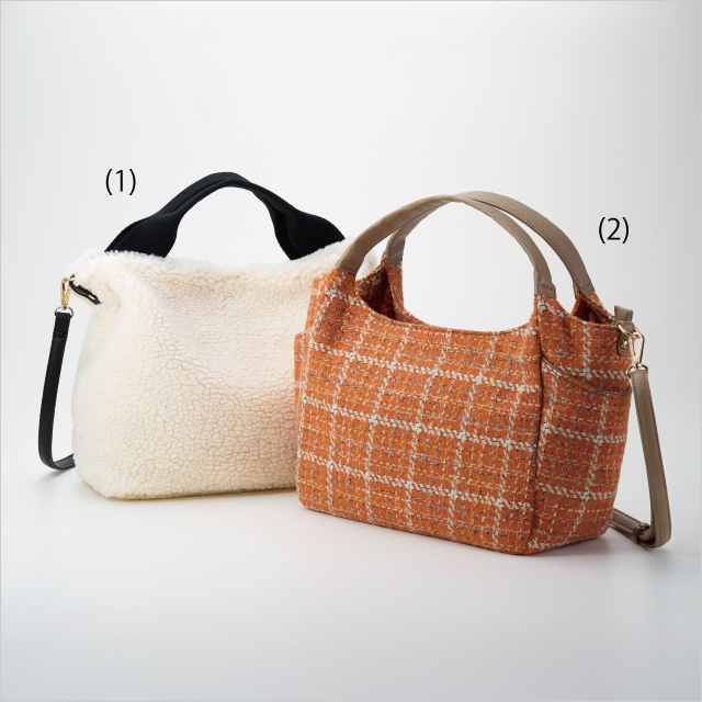 秋冬らしいツイード生地は、お出かけが楽しくなる明るいカラー。ショルダーベルト付きで斜め掛けもできる2way仕様です。外、サイド、中、それぞれにポケットを備えます。