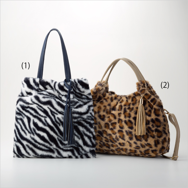エコファーを使用した秋冬らしいアニマル柄のバッグ。ショルダーベルト付きで斜め掛けもできる2way仕様です*。