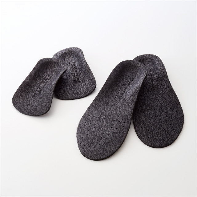足元からバランスを整え、しなやかな脚取りを実現するインソール。ロングタイプはインソールが取り外せるシューズに、ショートタイプはインソールが取り外せないシューズに適しています。