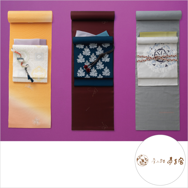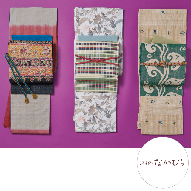 人気きものショップの〈KIMONO MODERN〉によるワークショップを開催。約15種類の生地から選び自由に組み合わせて、オリジナルの半巾帯をおつくりします。
