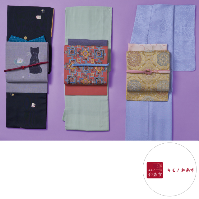 奈良と大阪に店舗を構える人気のリユースきものセレクトショップから、大人かわいいコーディネートをご紹介。ジェイアール名古屋タカシマヤ開店25周年を記念した、きもの・帯・帯揚げ・帯締めのセットをご用意しました。