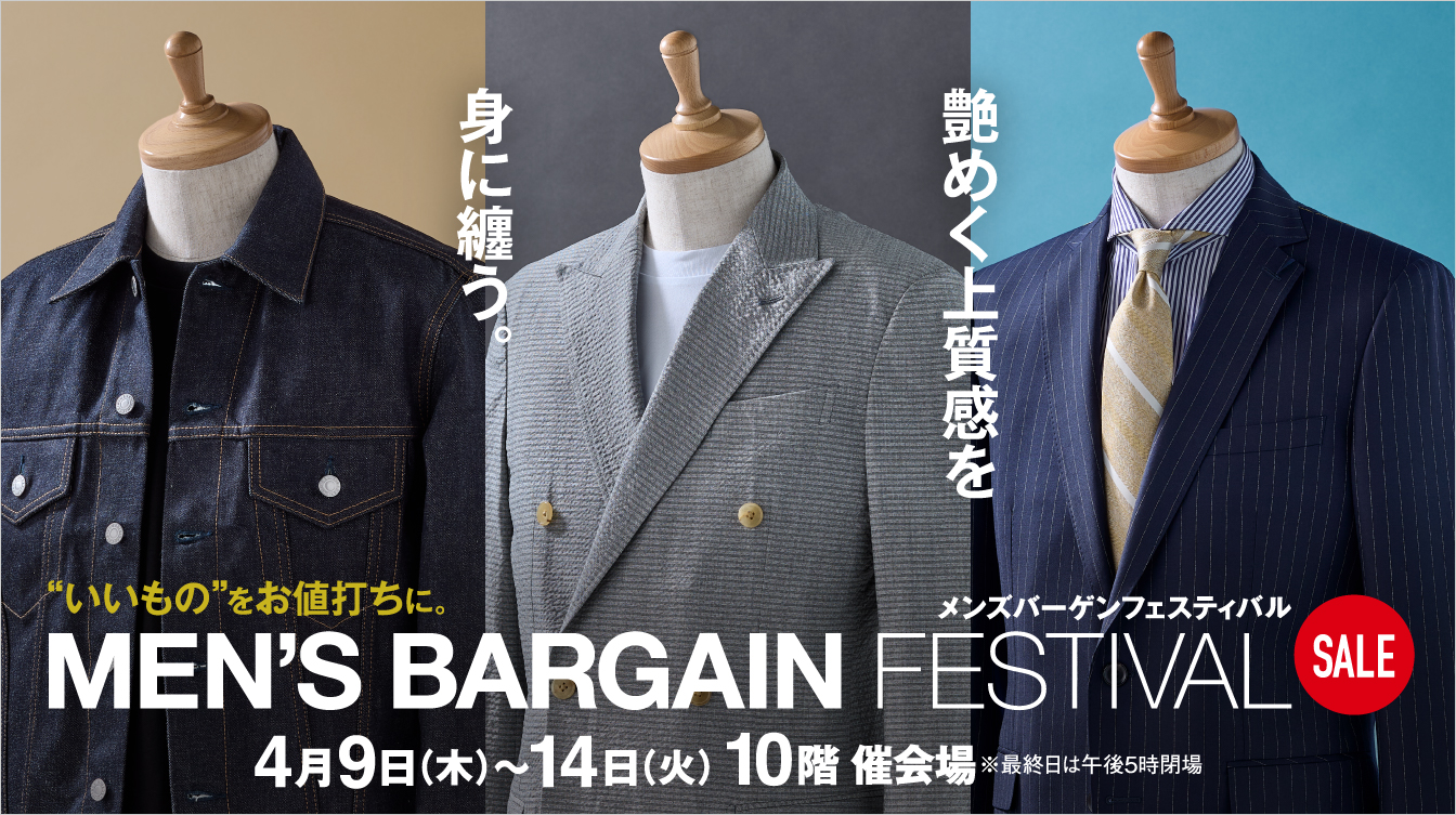 お値打ちなスーツやカジュアルウェアなどが勢揃い。良質素材や洗練されたデザインが、大人の男を格上げしてくれます。