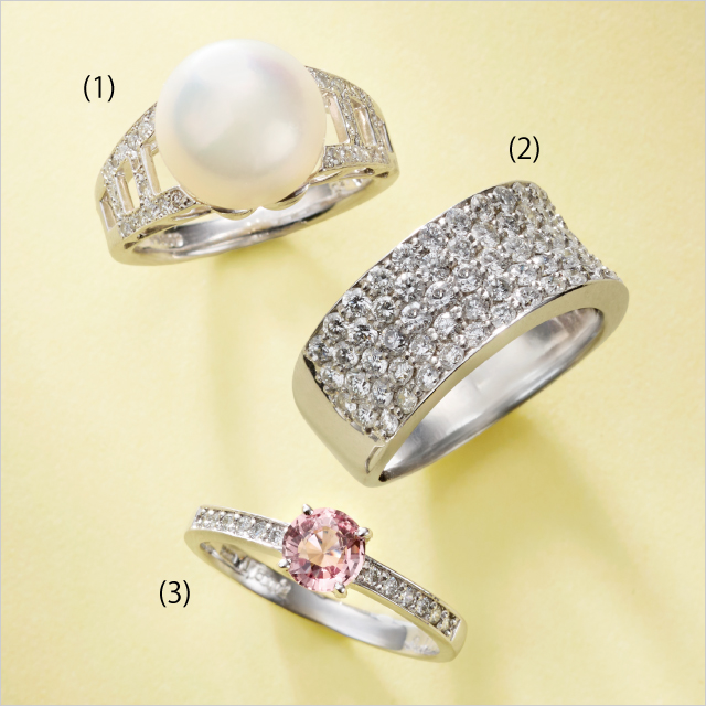 (1)リング(Pt/アコヤ真珠約10.5mm珠、ダイヤモンド計0.12ct)