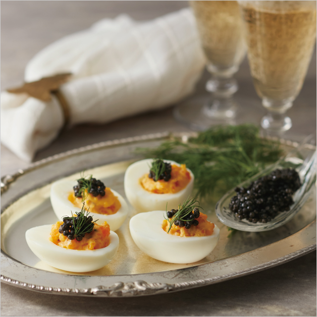 「瓶内二次発酵でブリオッシュのような香ばしさがあるシャンパーニュは、濃厚で泡もきめ細やか。やわらかな喉越しと柑橘系の味わいが、キャビアの塩味や黄身のコクとよく合います。乾杯などパーティーのスタートにぴったりです」