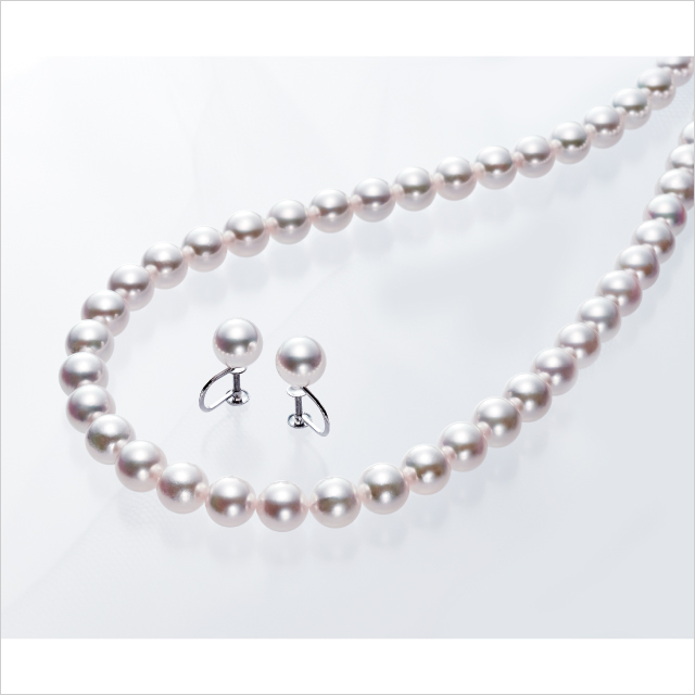 ネックレス:アコヤ真珠(9.0mm)、イヤリング:アコヤ真珠(9.0mm)