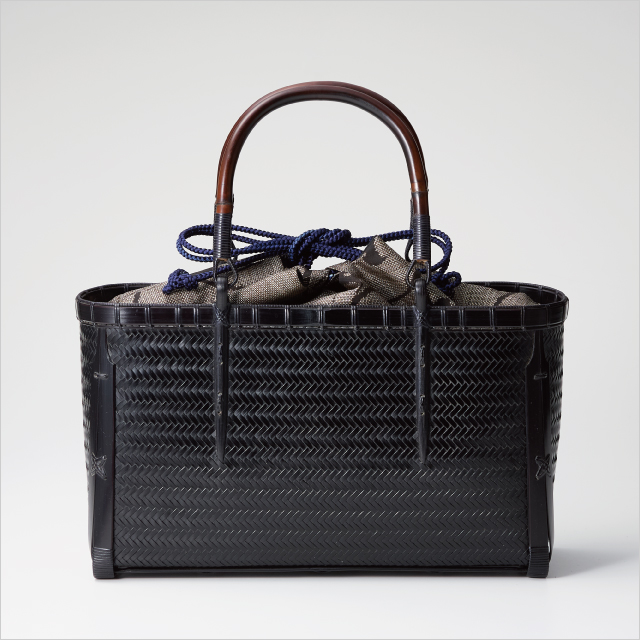 竹の幅を極限まで細かくさき、丁寧かつ緻密に編み上げたハンドバッグ。漆塗り仕上げで、使用していくうちに、艶が出ます。